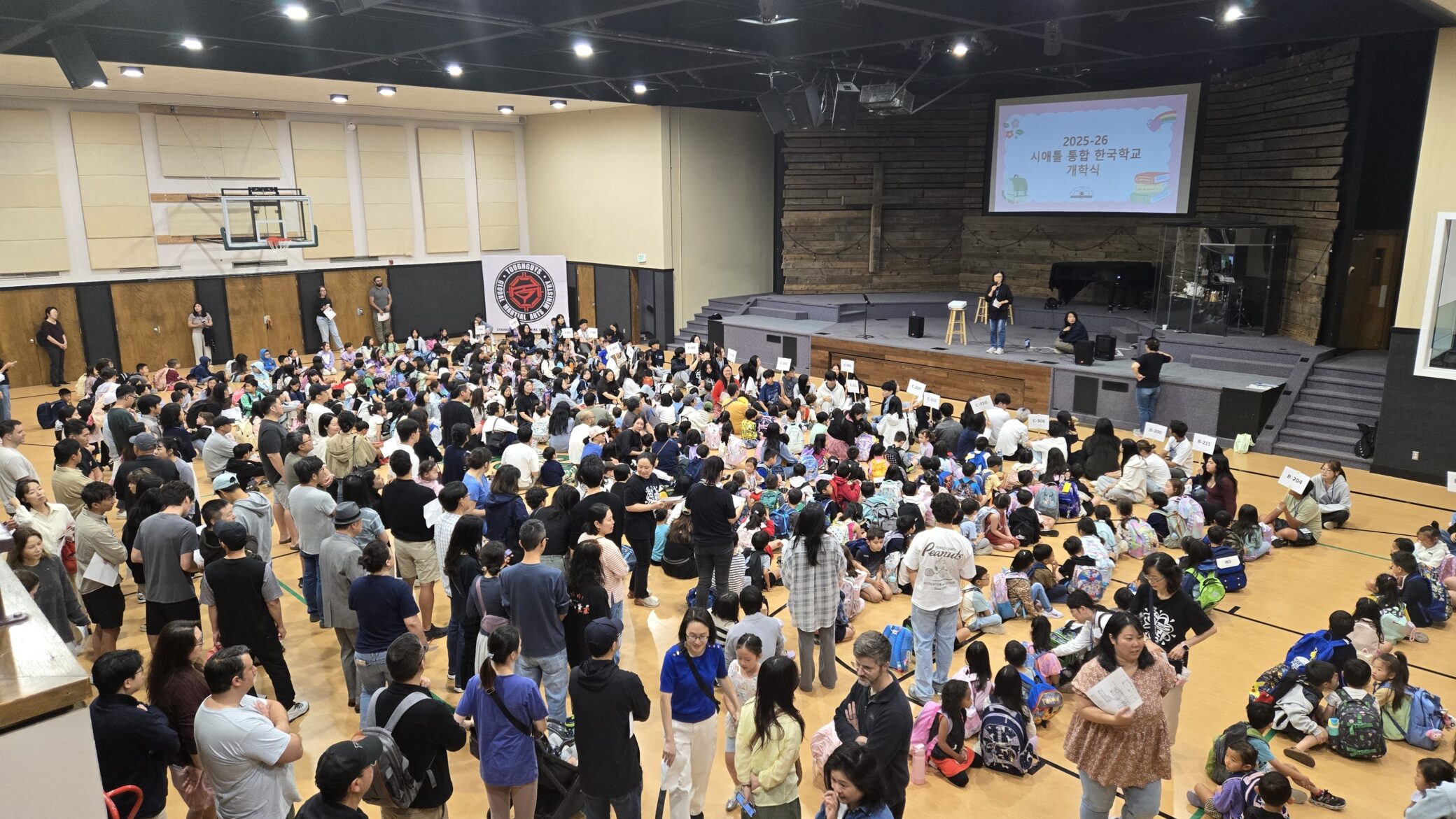 개학식은 현재 시애틀 통합 한국학교가 수업을 하는 바슬 헤리티지 크리스천 스쿨 강당에서 열렸으며, 400여 명의 학생들과 100여 명의 교사와 조교, 그리고 학부모들이 참석해 새로운 학기를 맞이하는 기대와 열기를 더했다.