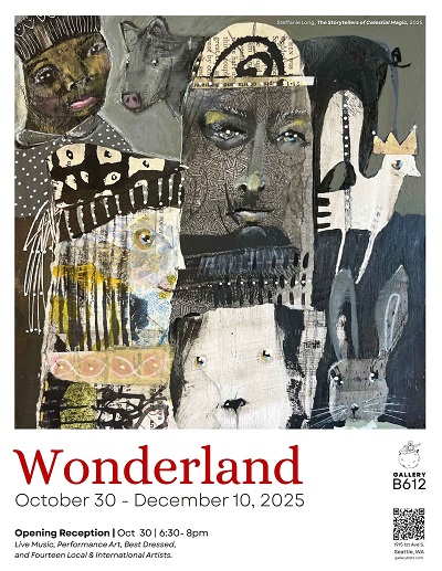 페스티벌과 동시에 진행되는 갤러리 B612의 전시 “Wonderland”는 10월 30일부터 12월 10일까지 시애틀에서 열린다. 이 전시는 국내외 14명의 작가가 참여하며, 앨리스의 세계를 직관적 해석이 아닌 상상력과 표현의 자유로 풀어낸다. 먹화, 세라믹, 추상 회화 등 다양한 매체와 스타일이 공존하며, 관객은 정지된 이미지 속에서도 움직이는 감정을 느낄 수 있다. 특히 한국의 먹화 작가 남유소(YooSho Nam)는 ‘원더랜드’ 신작 시리즈로 참여하며, 페스티벌 기간 중 라이브 페인팅 퍼포먼스를 선보인다. 또한 11월 11일에는 갤러리에서 전시 작품에서 영감을 받은 음악 및 무용 공연이 진행되어, 정지된 미술과 움직이는 무용의 경계를 넘는 예술적 융합을 이룬다.