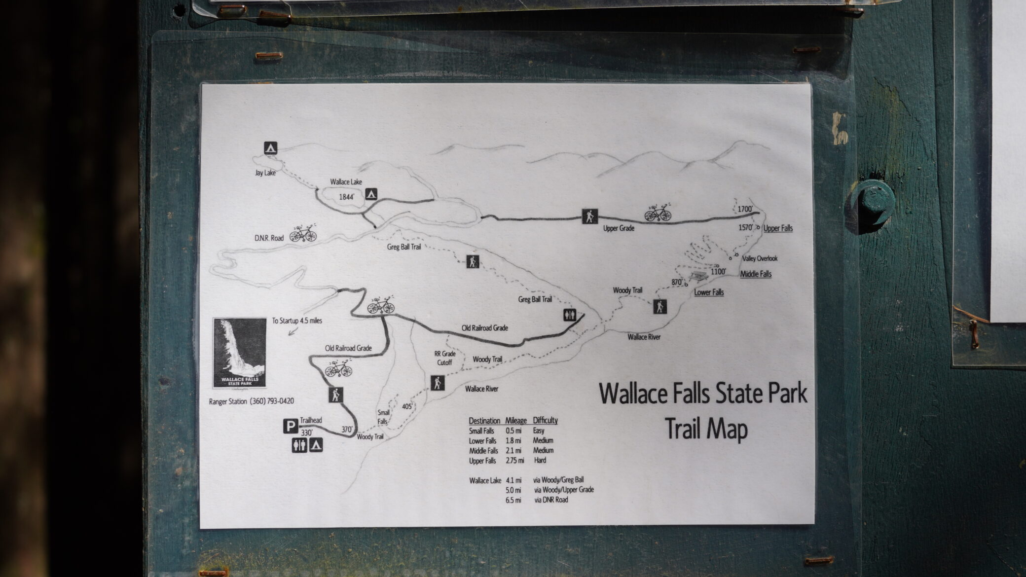 이곳의 매력은 이름 그대로 세 갈래로 이어지는 월리스 폭포(Wallace Falls)에 있다. 상단, 중간, 하단으로 나뉜 세 폭포는 각각 다른 높이와 형태로 흘러내리며, 가을이 되면 붉게 물든 단풍잎이 물줄기와 어우러져 장관을 이룬다. 트레일을 따라 걸으면 곳곳에서 짙은 침엽수 향과 서늘한 바람이 느껴지고, 나무 사이로 쏟아지는 햇살이 계절의 변화를 고스란히 전한다.