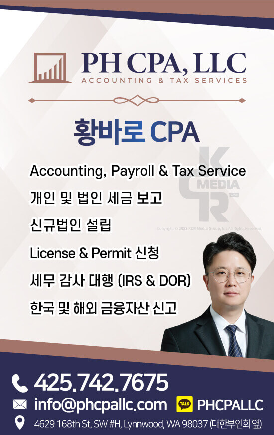 Tel: 425-742-7675SMS: 425-616-7429info@phcpallc.comKakaoTalk ID: PHCPALLC4629 168th St. SW #H, Lynnwood ,WA 98037 (대한부인회 옆) 모든 사진 및 컨텐츠의 저작권은 KCR […]