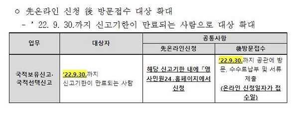 국적이탈 등 先온라인신청 국적 관련 민원 방문접수 기한 연장