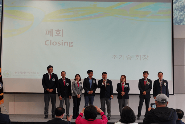 조기승 회장은 워싱턴주 체육회 관계자들과 무대에 올라 마지막 폐회 선언을 끝으로 “우리 워싱턴주 대표 선수단이 끝까지 잘 싸우고 돌아올 수 있도록 격려와 응원을 보내달라”고 당부했다.