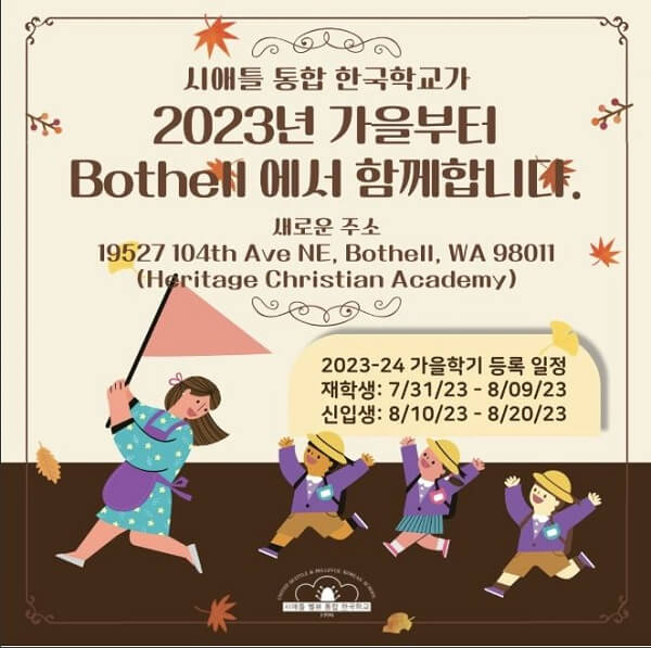 새로운 캠퍼스에서 신학기를 맞이하는 시애틀 통합한국학교(교장 윤혜성)가 2023~ 2024년 가을학기 학생 등록을 받는다.