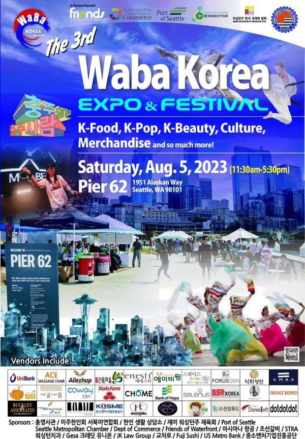 한인상공회의소 케이 전 전회장은 “2025년이 되면 현재 시애틀 워터 프론트의 규모가 몇배 이상으로 커지기 때문에 와바 행사도 계속적으로 성장해 나갈 것”이라며 “2023년 올해 2회 와봐 행사에는 BSR 유성이라는 BTS 굿즈 판매업체, 덕화명란 등 한국에서 오는 업체들도 있다”고 소개했다. 또한 “한식세계회 협회의 푸드 코너도 마련되어 인기있는 한식들도 판매할 예정”이라고 설명했다.