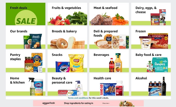 아마존은 홀푸드(Whole Foods)를 2017년에 137억 달러에 인수하고 아마존의 고기술을 시행하는 아마존 고 편의점 및 아마존 프레쉬 매장을 개설하는 등 식품 분야에서 사업을 확장하기 위한 다각도의 노력을 기울였다.