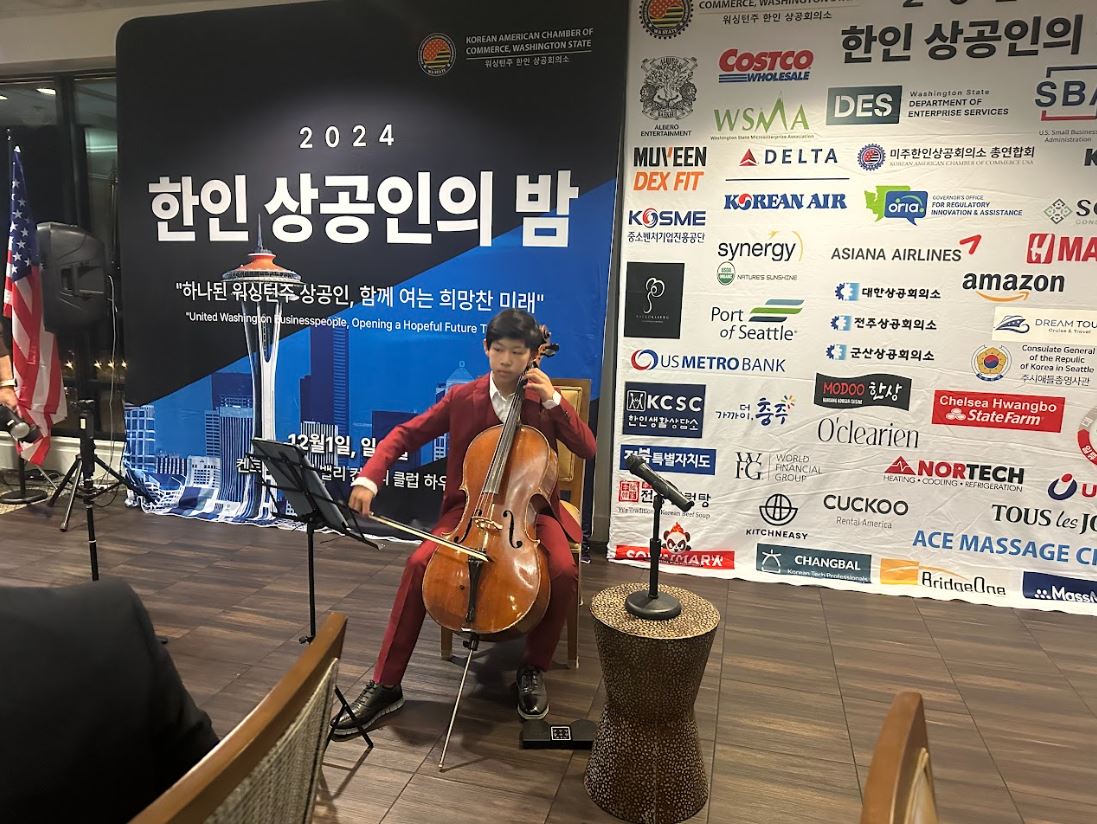 이날 행사의 축하공연으로는 한인 청소년 유망 첼리스트 안토니 김 군이 나와 감미로운 첼로 연주를 들려줘 참석자들로부터 큰 박수를 받았다.