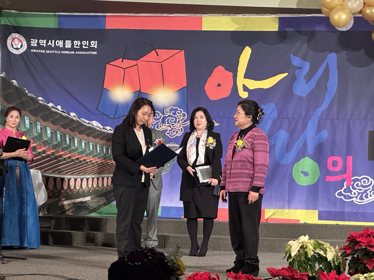 한인회에서는 서은지 주시애틀총영사, 신디 류 워싱턴주하원의원 및 이현기, 박태호 한친회 회장들에게 감사패를 증정했으며, 지난해까지 시애틀한인회를 이끌었던 제47대 한인회 회장 유영숙씨와 이사장 이수잔씨에게는 공로패를 증정했다. 이외에도 6.25참전용사회와 스노미쉬 노인회, 시애틀 통합 노인회, 시애틀 한국 노인회, 타코마 한미 노인회, 페드럴웨이 상록회 및 행복 노인회등에 감사패를 증정했다.