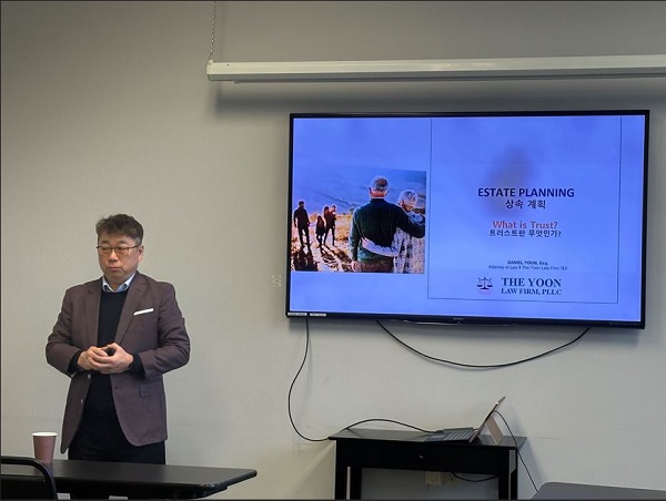 린우드에 위치한 더 윤 로펌(THE YOON LAW FIRM, PLLC)의 대니얼 윤 대표 변호사는 2월 28일(금) 오전 10시, 한인들을 위한 ‘트러스트·상속 계획의 이해’ 무료 강좌를 개최했다.