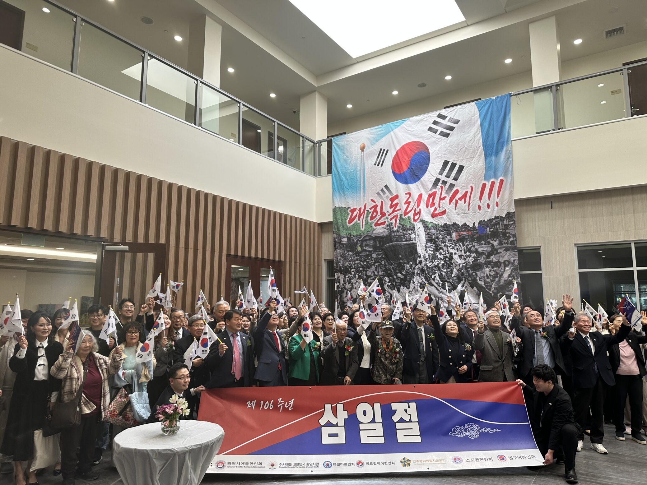 제106주년 3·1절 기념식이 3월 1일 오전 11시, 주시애틀총영사관 1층 세미나실에서 열렸다. 이날 행사에는 워싱턴주 한인 단체장과 교민들이 참석해 순국선열을 기리며 한인 커뮤니티의 단합을 다짐하는 뜻깊은 시간을 가졌다.