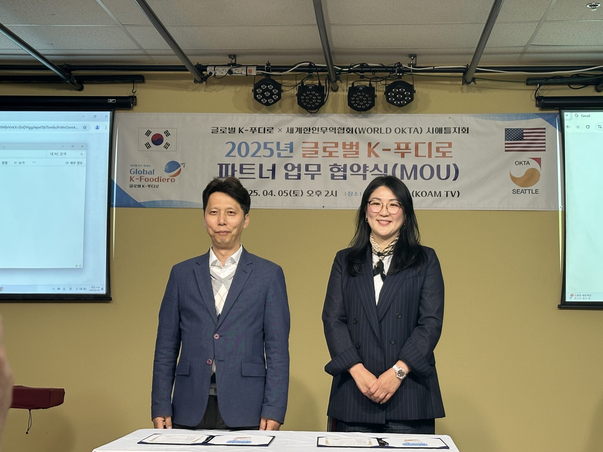 지난 4월 5일(토) 오후 2시, 페더럴웨이 코엠 방송국 공개홀에서 ‘글로벌 K-푸디’ 회원사를 초청한 세계한인무역협회(Overseas Korean Trade Association, OKTA) 시애틀 지회 주최의 ‘글로벌 K-푸드로 파트너 업무 협약식(MOU) 및 세미나’가 성황리에 개최됐다.