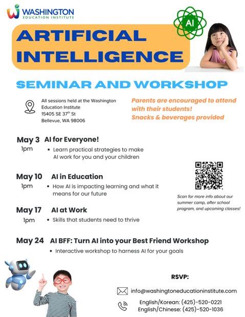 참가를 희망하는 학부모들은 전화번호나 이메일(info@WashingtonEducationInstitute.com)을 통해 사전 예약해야 하며 세미나에 대한 문의는 425-520-0221로 가능하다.
