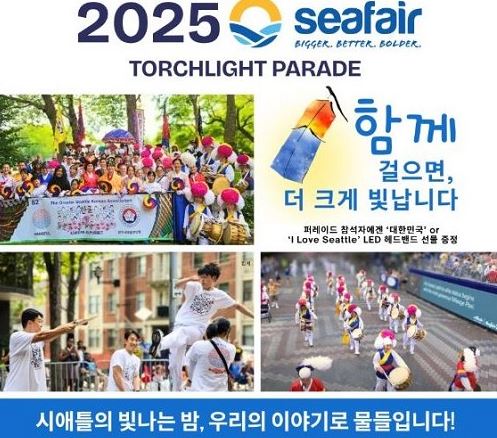 오는 26일 저녁 시애틀 다운타운 워터프런트에서 열리는 ‘시페어 토치라이트 퍼레이드(Seafair Torchlight Parade)’는 광역시애틀한인회, 재외동포재단, 주시애틀대한민국총영사관이 공동 주최하며, 한인사회가 대규모로 참여해 지역사회 화합과 문화적 위상을 높이는 뜻깊은 행사로 기대를 모으고 있다.