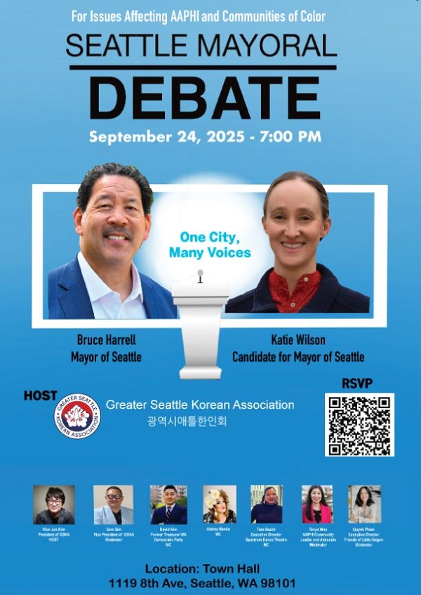 이번 토론회는 “하나의 도시, 다양한 목소리(One City, Many Voices)”라는 주제로 진행되며, 아시아계 미국인·태평양 도서민(AAPHI)과 유색인종 커뮤니티에 영향을 미치는 주요 현안을 다룰 예정이다. 행사는 광역시애틀한인회가 주관하며, 다수의 지역사회 지도자들이 사회와 패널로 참여한다.