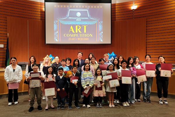서북미한인학부모회가 주최한 ‘제2회 PNW KoPA 아트 컴피티션 시상식’이 지난 10일 벨뷰 시티홀에서 성황리에 열렸다. 이날 행사에는 구광일 시애틀 영사와 마틸다 킴 한국예술인협회(KAAW) 회장이 참석해 학생들의 수상을 축하했다.