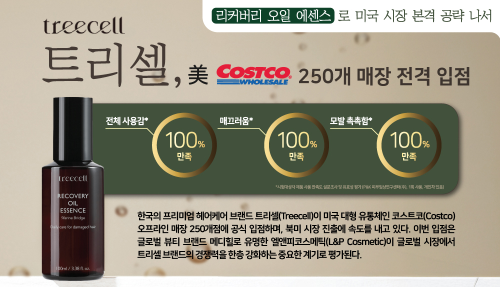 이번에 미국 코스트코 오프라인 매장에 입점한 제품은 트리셀의 대표 아이템 ‘리커버리 오일 에센스(Recovery Oil Essence)’다. 트리셀은 올해 초 코스트코 온라인몰에 ‘콜라겐 부스트 스칼프 팩(Collagen Boost Scalp Pack)’을 선보이며 온라인 진출에 성공한 데 이어, 불과 몇 달 만에 오프라인 입점이라는 성과를 달성했다. 특히 코스트코는 새로운 브랜드나 제품의 입점 심사가 매우 엄격하기로 유명하다. 그런 코스트코 매장 250곳에 트리셀 리커버리 오일 에센스가 동시에 입점하게 된 것은, 제품의 품질과 시장성, 그리고 소비자 만족도 면에서 미국 바이어들에게 확실히 인정받았다는 의미로 풀이된다. 이번 입점은 캘리포니아, 텍사스, 워싱턴, 뉴욕 등 주요 대도시를 포함한 지역에서 동시에 이루어졌으며, 이를 통해 트리셀은 한인 소비자뿐 아니라 미국 전역의 다양한 고객층에게 브랜드를 직접 선보이게 되었다.