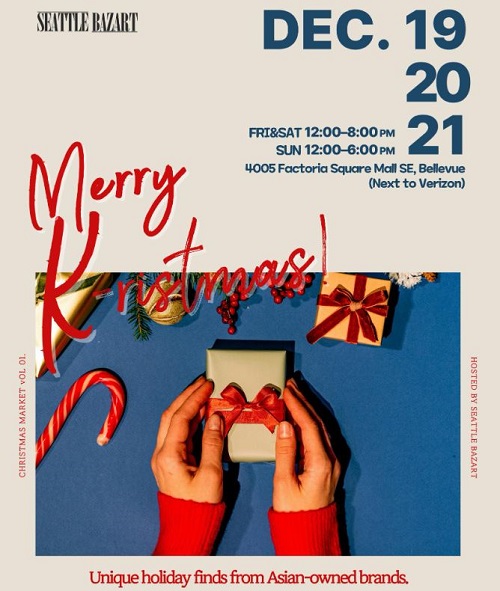 시애틀·벨뷰 일대에서 다양한 문화·라이프스타일 팝업을 운영해 온 시애틀바자르(Seattle Bazart)가 오는 12월 19일부터 21일까지 벨뷰 팩토리아몰에서 한국 및 아시아 브랜드 35개가 참여하는 대형 크리스마스 마켓 ‘MERRY K-RISTMAS MARKET 2025’를 개최한다.