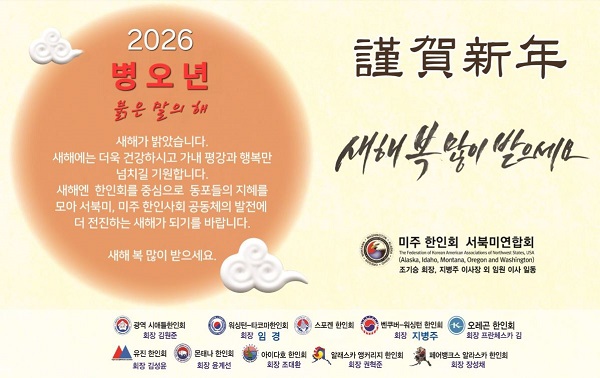 서북미연합회는 “새해에는 한인회를 중심으로 동포들의 지혜를 모아 서북미 지역은 물론 미주 한인사회 전체의 발전에 더욱 기여하는 한 해가 되기를 바란다”고 밝혔다. 신년하례식 및 임시총회는 1월 17일 토요일 오후 3시에 페더럴웨이에 위치한 해송식당에서 열린다. 연합회는 회원 및 관계자들의 적극적인 참석을 당부했다.
