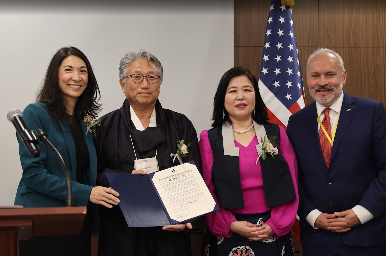 페인 의원은 “묵묵한 희생과 교육에 대한 믿음이 오늘의 우리를 만들었다”며 “이민 1세대가 닦아 놓은 길 위에서 다음 세대가 더 멀리 나아가야 한다”고 말했다. 이어 킹카운티 ‘한인의날’ 공식 선언문을 낭독하고 서 총영사에게 전달했다.