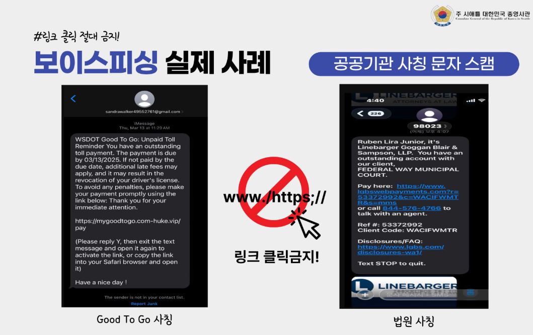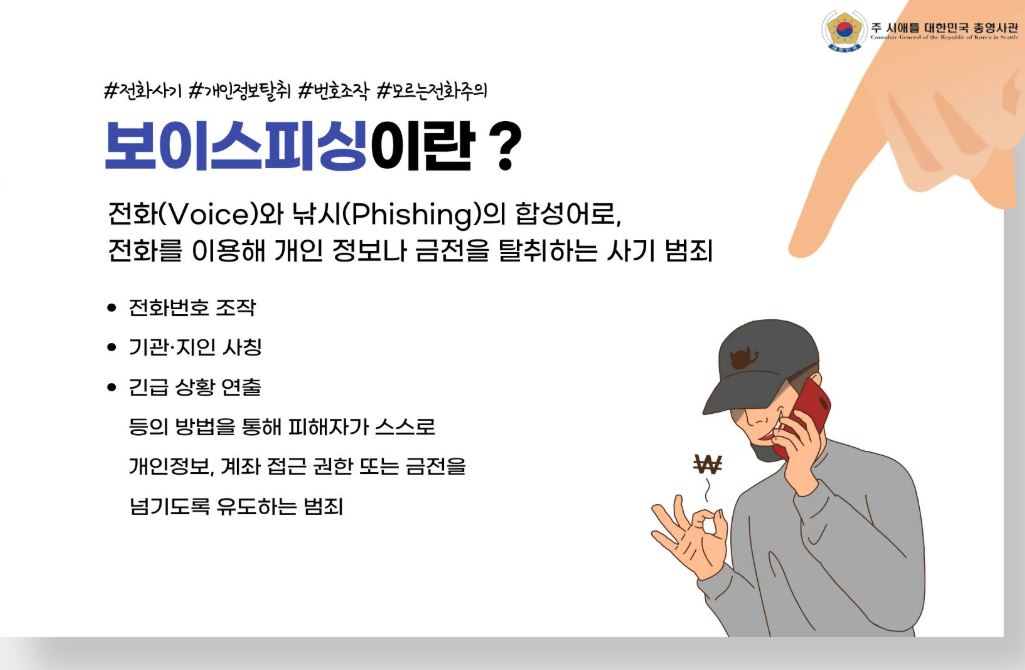 주시애틀총영사관 사칭 보이스피싱 급증… “텔레그램·시그널 사용 안 해, 개인정보 요구 절대 없어”
