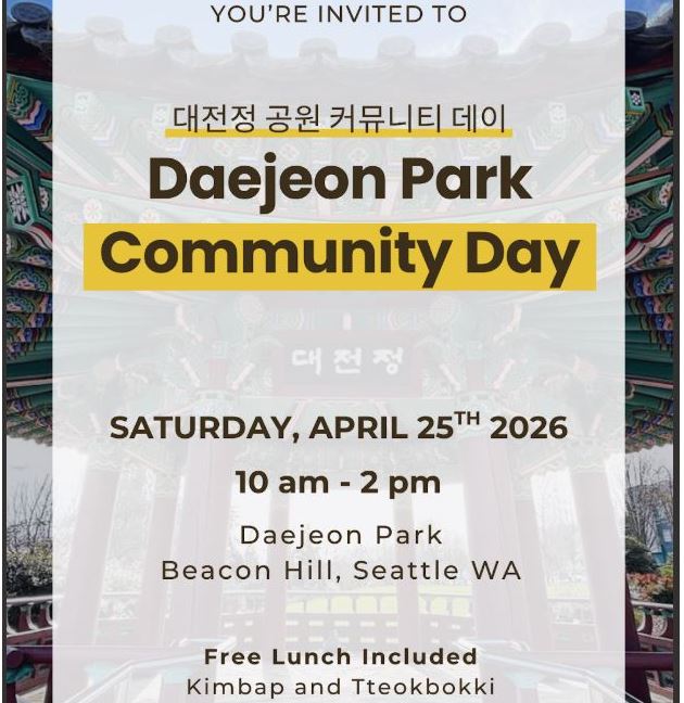 광역시애틀한인회(회장 김원준, 대전정 위원회 위원장 코리 한)는 오는 4월 25일 토요일 오전 10시부터 오후 2시까지 ‘대전정 공원 커뮤니티 데이’를 개최한다. 이번 행사는 단순한 주민 교류를 넘어, 최근 제기된 공원 주변 문제를 공유하고 해결 방안을 모색하는 데 초점을 맞추고 있다.