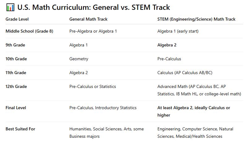 셋째, 대학 입학 경쟁력이다. 미국의 대학 입학 시험인 SAT와 ACT에서 수학은 높은 비중을 차지한다. 특히 공과대학이나 자연과학 계열 지원자는 고등학교에서 어느 수준의 수학 과목을 이수했는지가 중요한 평가 요소가 된다.