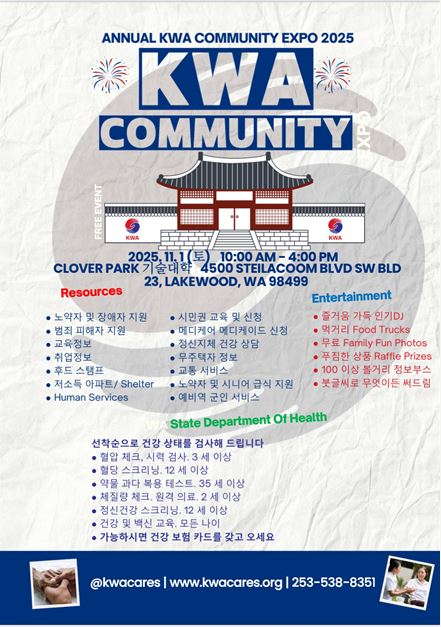 53년 역사를 가진 대한부인회(이사장 박명래)는 오는 11월 1일(토) 워싱턴주 다민족들과 함께 창사 이래 최대 규모의 행사인 ‘KWA 커뮤니티 엑스포 2025’를 […]