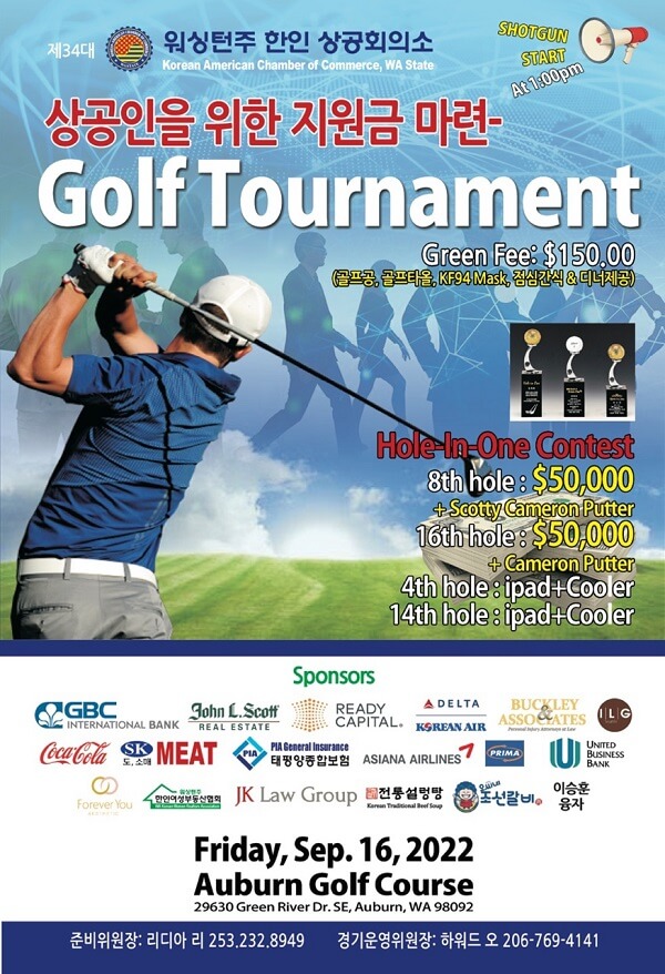 워싱턴주 한인 상공회의소가 오는 9월 16일 (금) 오후 1시 어번 골프 코스에서 상공인 지원금 마련을 위한 골프대회를 개최한다. 이번 대회는 […]
