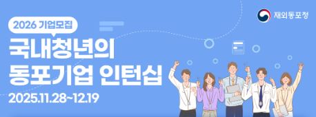 재외동포청이 한국 청년들에게 글로벌 실무 경험을 제공하는 ‘2026 국내청년의 동포기업 인턴십’의 참여 기업 모집을 시작했다. 모집 기간은 11월 28일부터 12월 […]