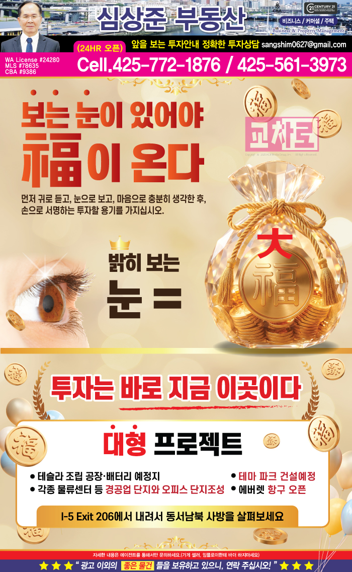워싱턴주에서만 35년 이상 경험이, 실적과 고객이 증명하는 신뢰있는 부동산