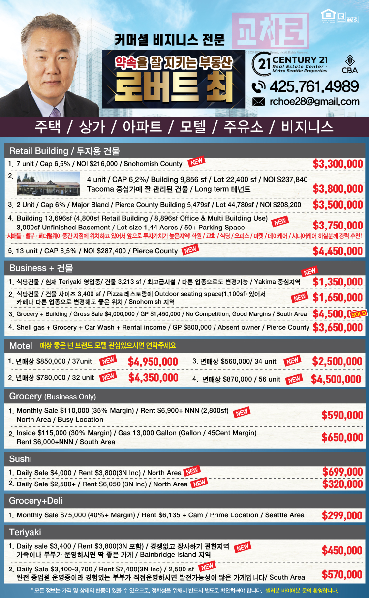 커머셜 비지니스 전문, 약속을 잘 지키는 부동산, 로버트최 부동산!🏡