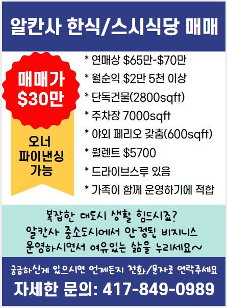 알칸사 한식/스시식당 매매