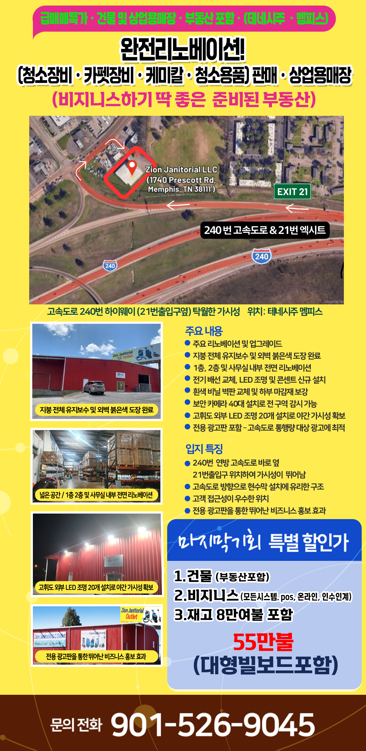 📢 Zon Janitorial LLC – 상업용 건물 + 비즈니스 + 재고 매각