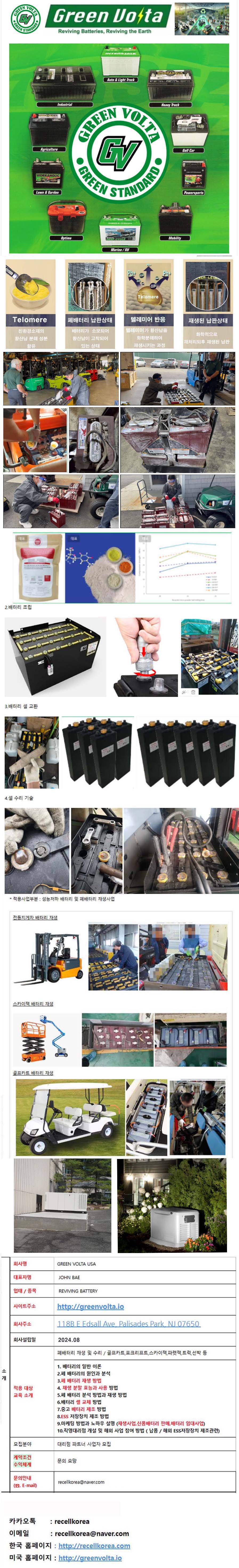 저희 회사의 주요 사업은 폐배터리 재생사업입니다 주로 골프카트 배터리 ,일렉트릭포크리프트,파렛잭,스카이잭 그리고 자동차 AGM배터리를 재생을하고 있습니다