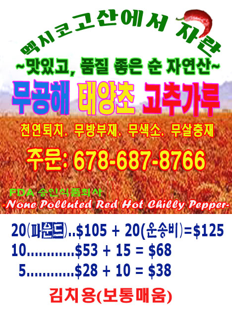 새고추가루 가격좋고 품질좋은 무공해 고추가루