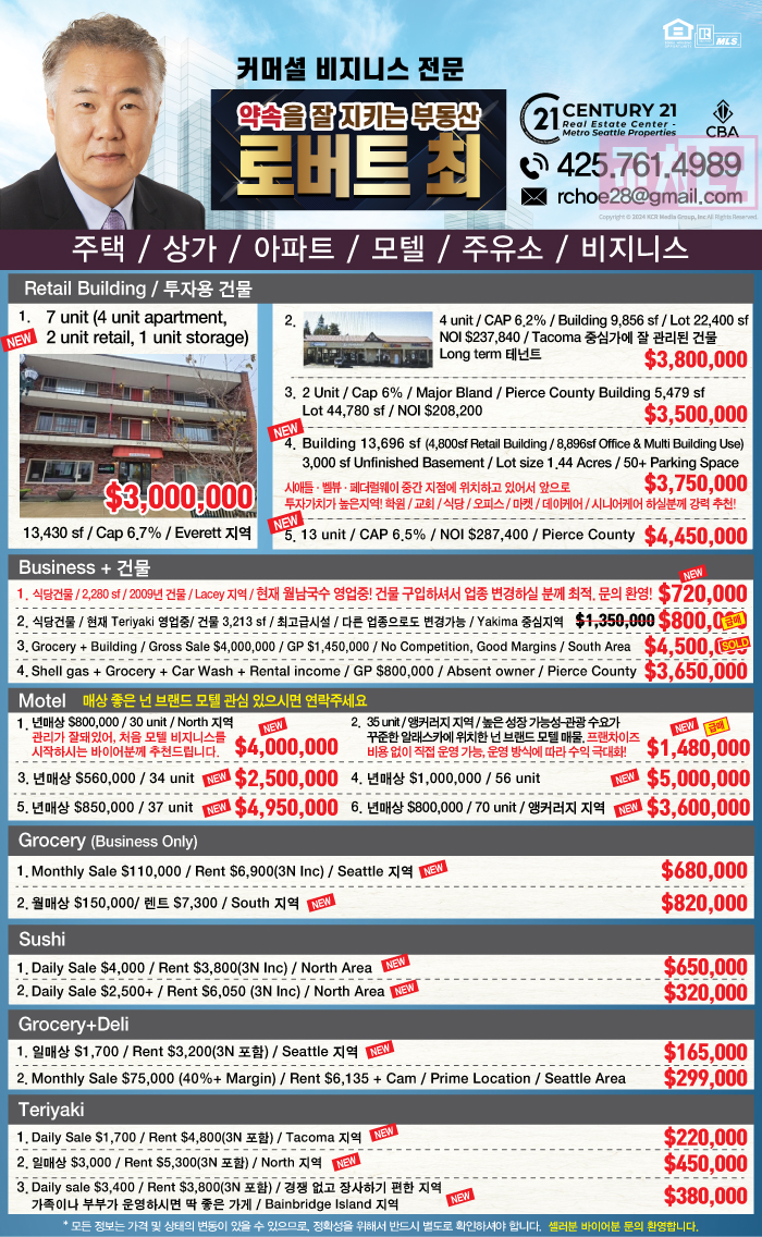 커머셜 비지니스 전문, 약속을 잘 지키는 부동산, 로버트최 부동산!🏡