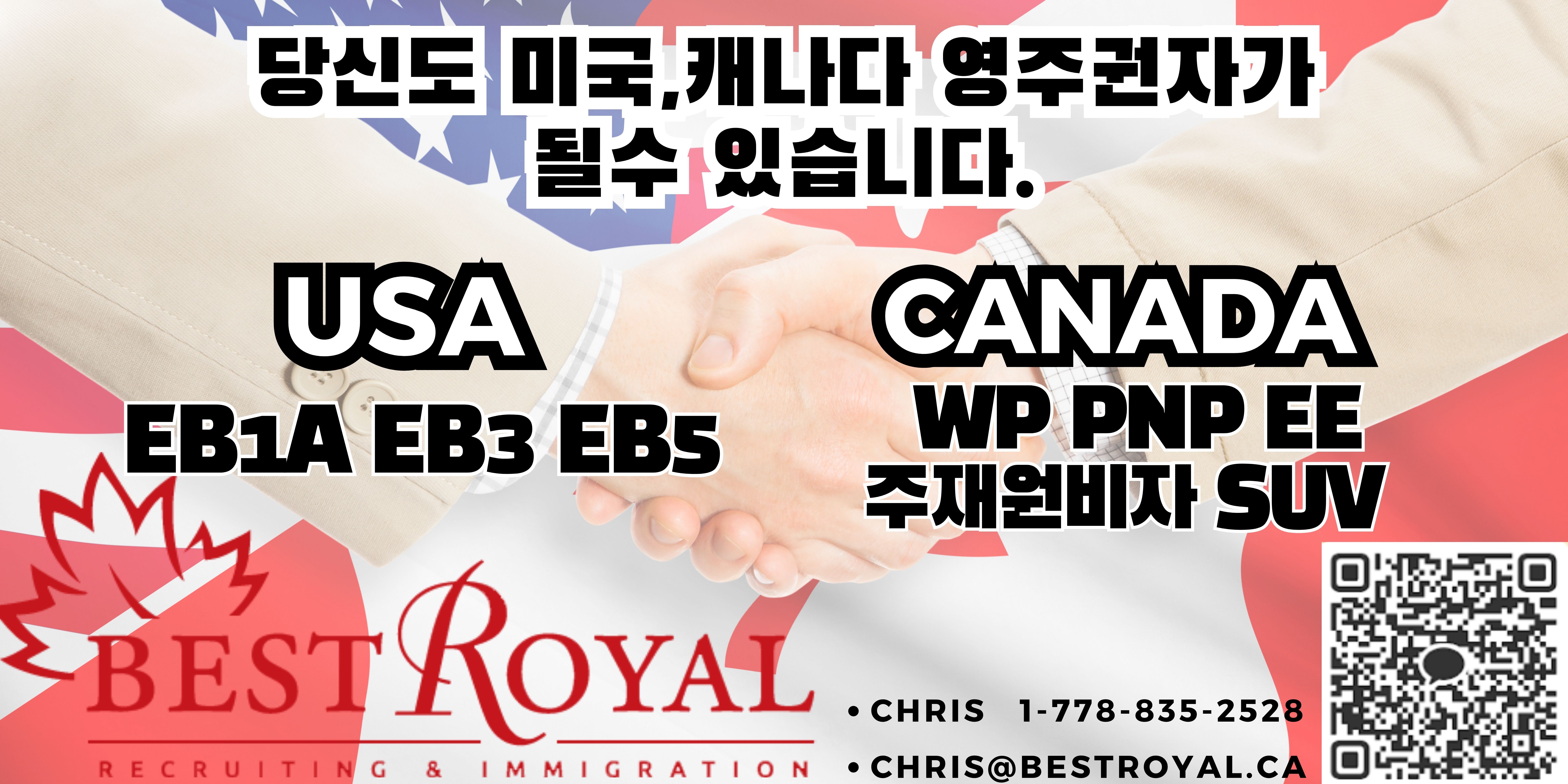 캐나다&미국 취업후 이민 전문 이민컨설팅 베스트로얄 Chris라고 합니다.
