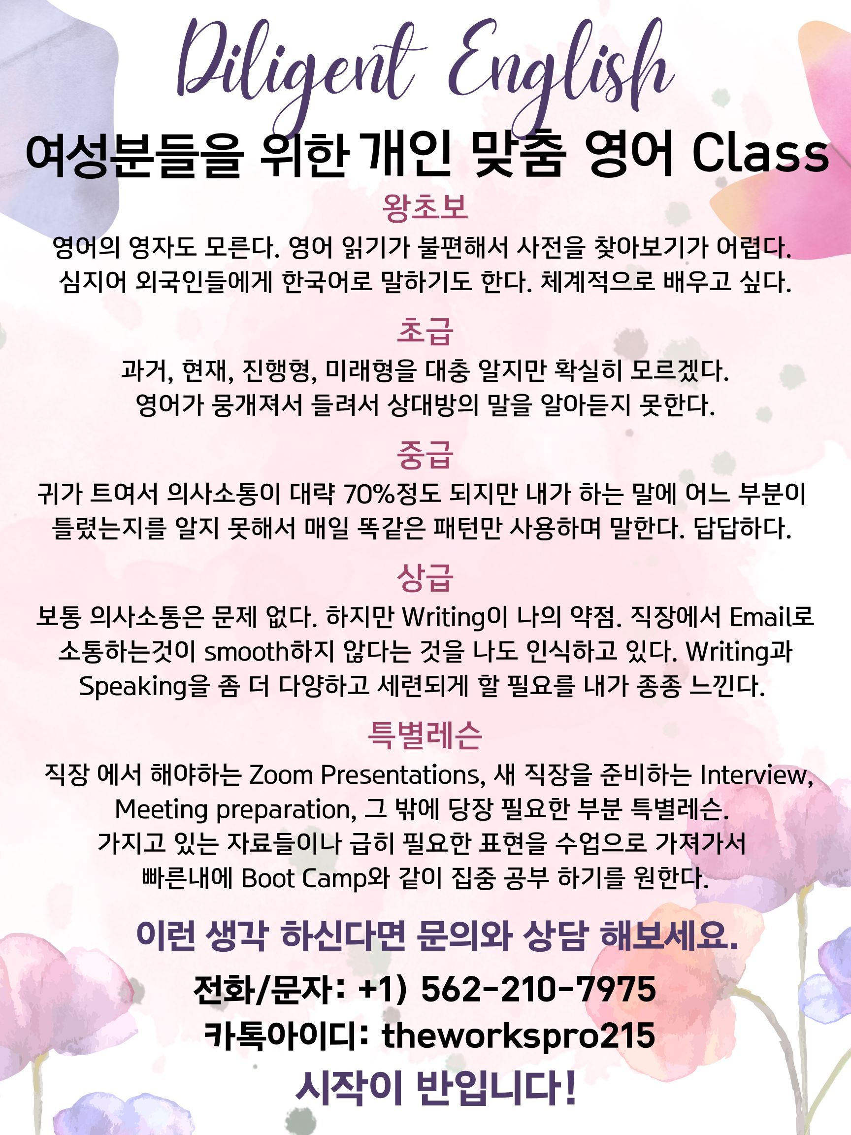 [영어과외!] 여성분들을 위한 영어 개인 교습