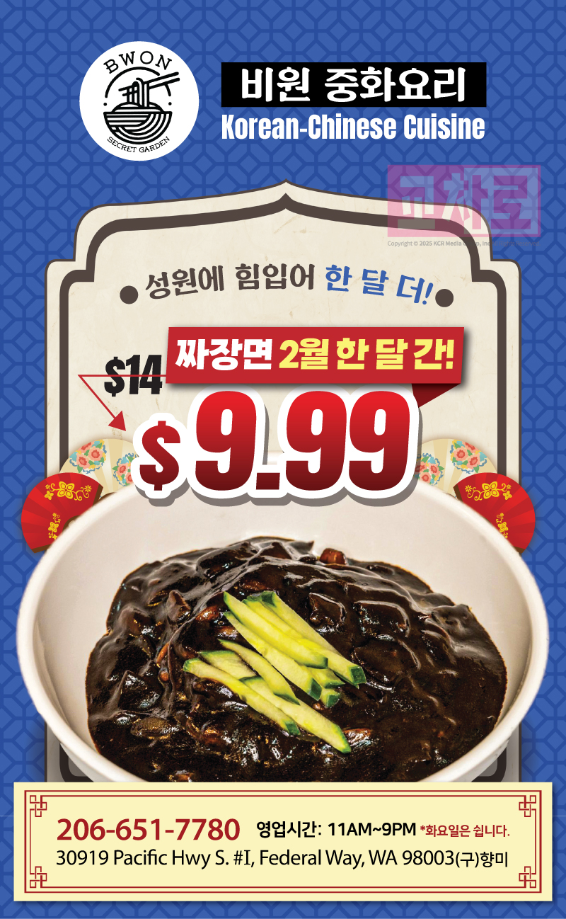 [비원] 고객님들의 성원에 힘입어 이벤트 앵콜!! 짜장면 2월 한 달간 $9.99!! 연장합니다!🔥