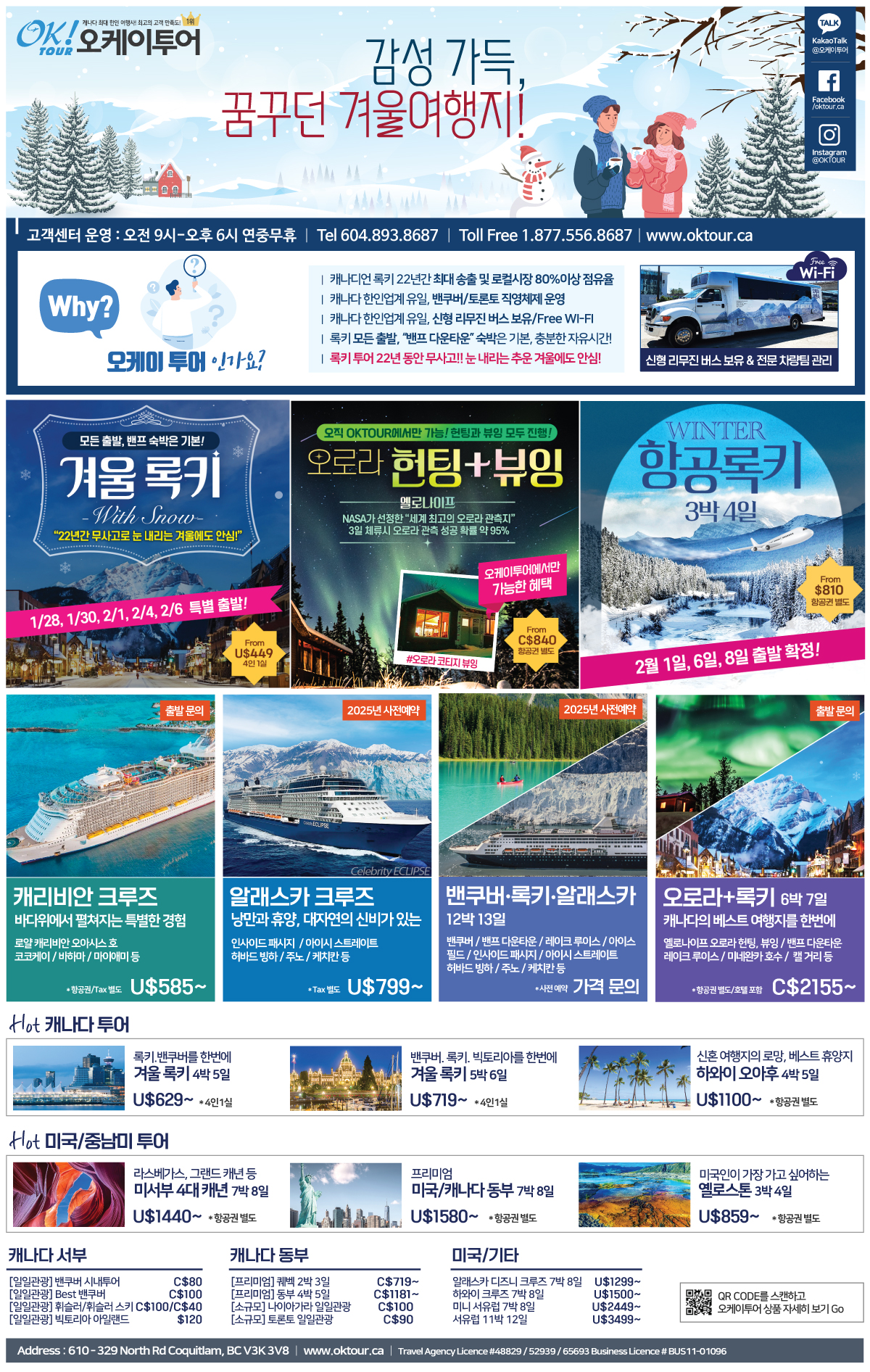 안녕하세요, 캐나다 최대 한인여행사 오케이 투어입니다.
