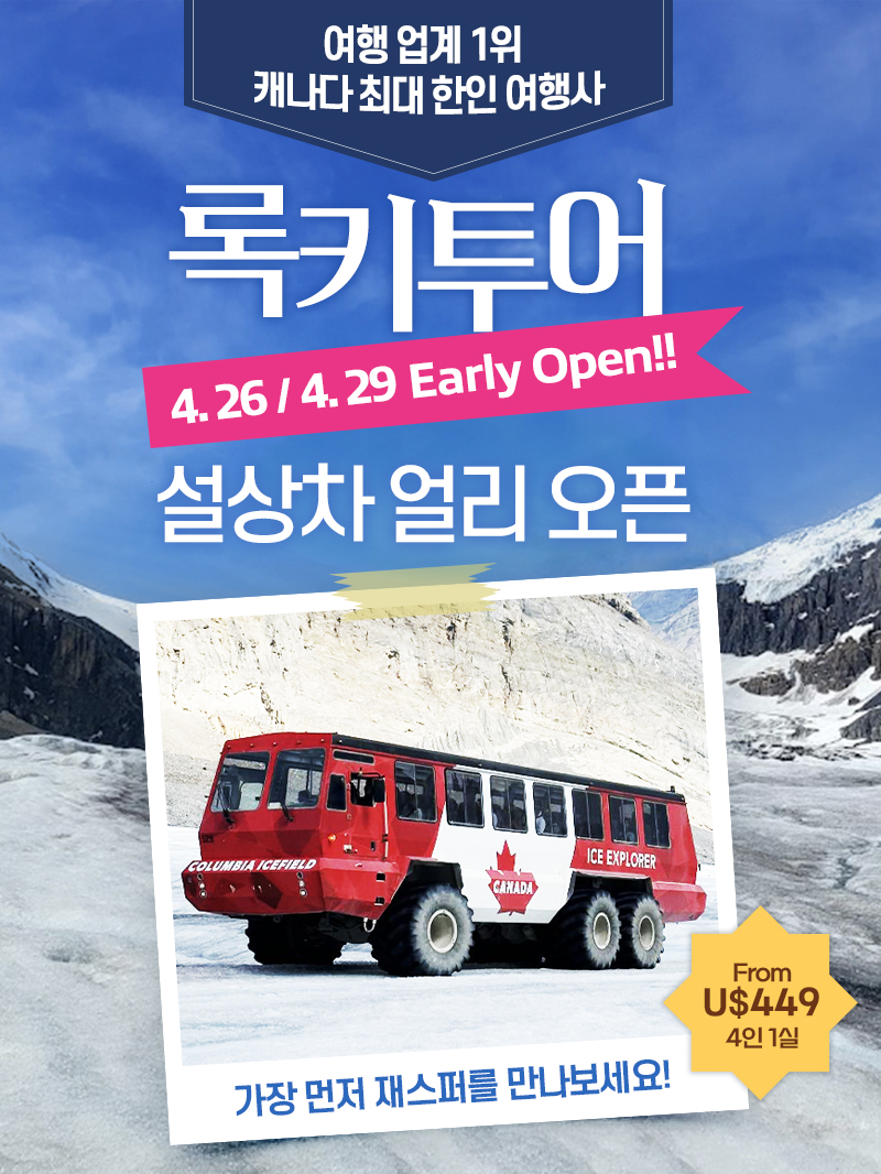 캐나다 최대 한인여행사 오케이투어! 이스터데이 할인 이벤트&아이스필드 얼리오픈!