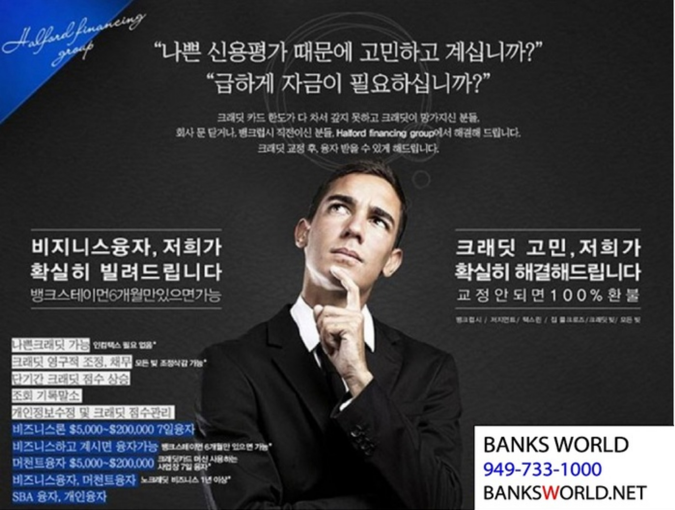 개인, 상업융자 / SBA 20만~50만 / 주택융자 / 재융자