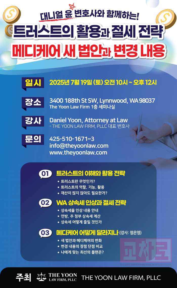 [대니얼윤 변호사] 트러스트의 활용&절세 전략, 메디케어 새법안과 변경 내용 세미나 개최!