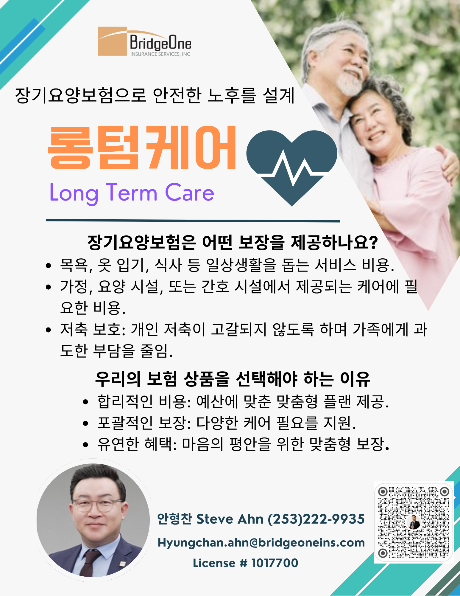Daily Benefit (일일 보장 금액): 하루에 받을 수 있는 금액 ($150~$300) Benefit Period (지급 기간): 2년, 3년, 평생 등 Elimination Period (면책 기간): 보험금 지급 전 대기 기간 (30~90일) Inflation Protection (물가 상승 보장): 요양 비용 상승에 대비해 보장금액도 자동 상승3. Medicaid 대비 전략도 병행