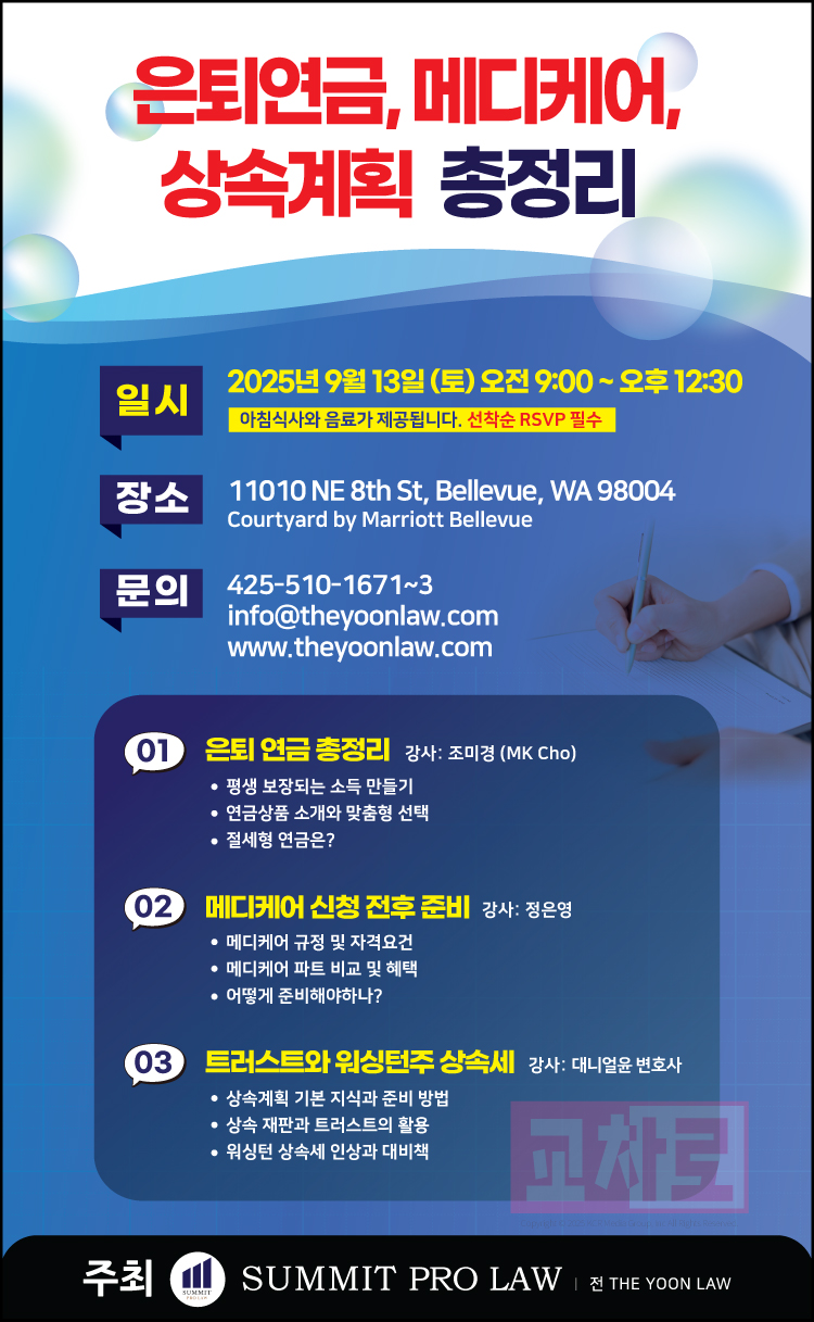 [SUMMIT PRO LAW] 은퇴연금, 메디케어, 상속계획 총정리 세미나!