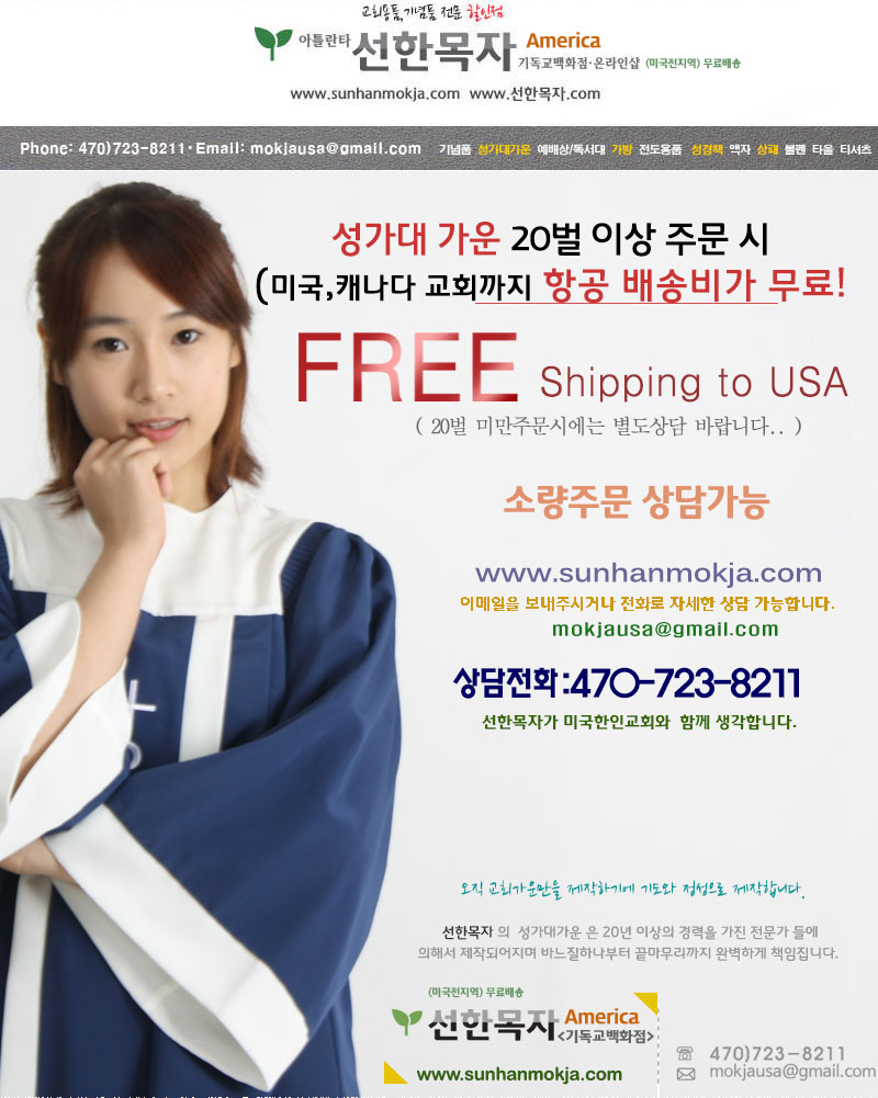 또한 성가대가운 은 공장에서 직접제작함으로 정가의 40%할인해 드립니다.