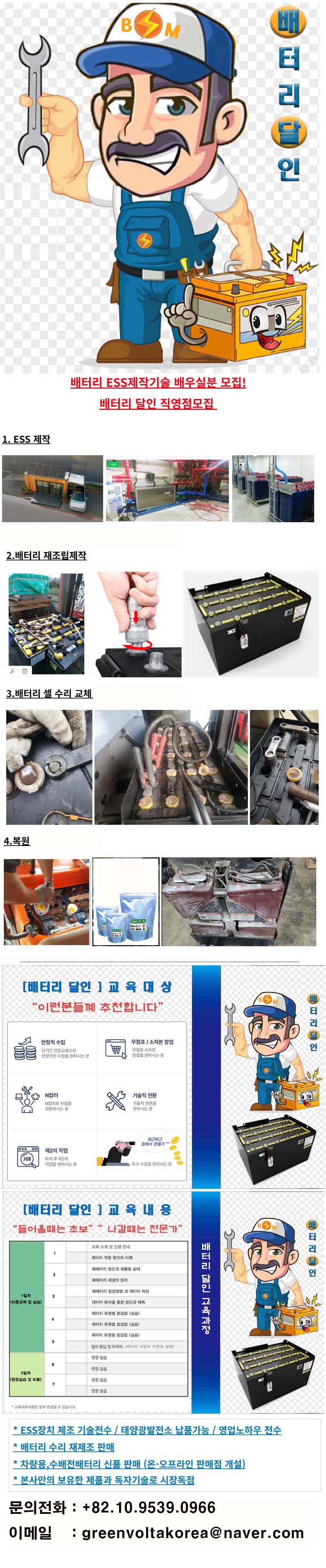 저희 그린볼타의 주요 사업은 폐배터리 재생사업이며 주로 골프카트 배터리 ,일렉트릭포크리프트,파렛잭,스카이잭 그리고 자동차 AGM배터리를 재생을하고 있습니다