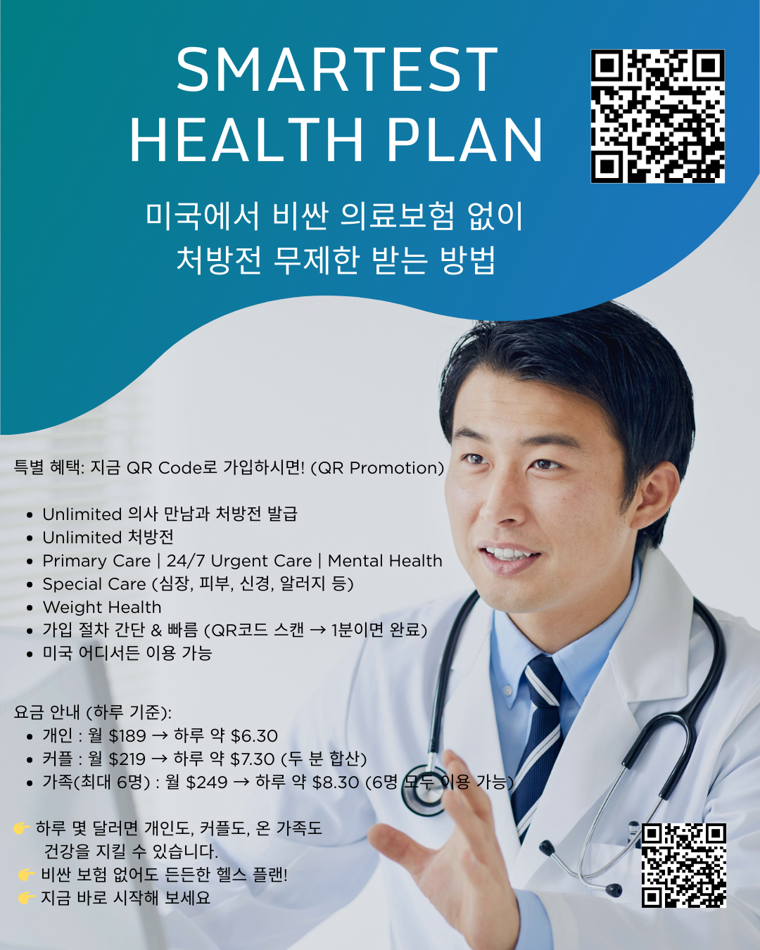 하루로 계산하면 약 $8, 커피 한 잔 값으로 병원 걱정을 덜 수 있습니다.
