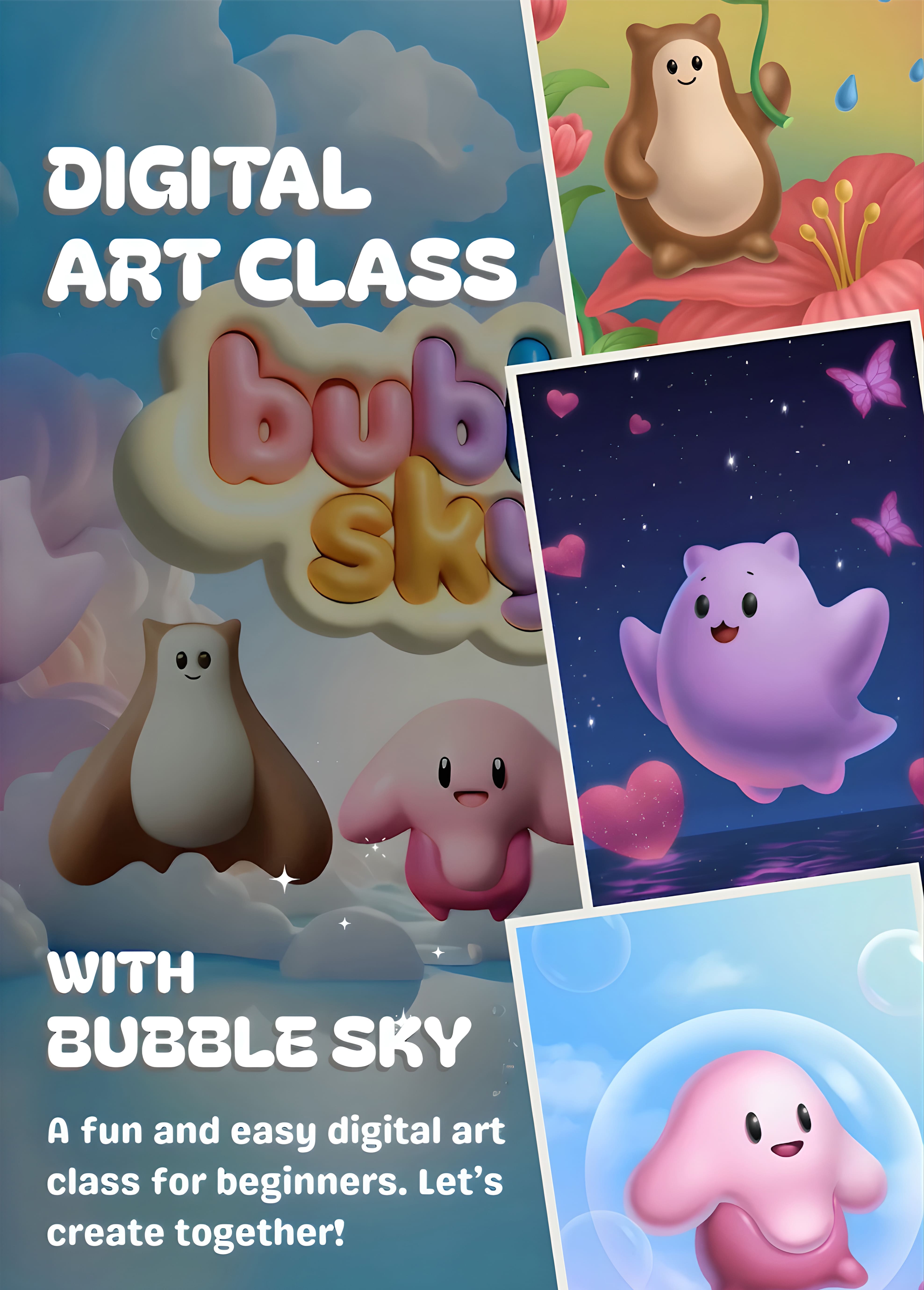 아이부터 어른까지 누구나 쉽고 즐겁게 배울 수 있는 Procreate 디지털 드로잉 입문 클래스가 열립니다! 특히 귀엽고 감성적인 버블 스카이 캐릭터를 그리면서, 기초부터 차근차근 배워볼 수 있는 초보자 맞춤형 수업이에요.