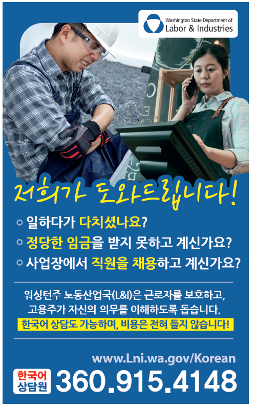 워싱턴주 노동산업국, “저희가 도와 드립니다”