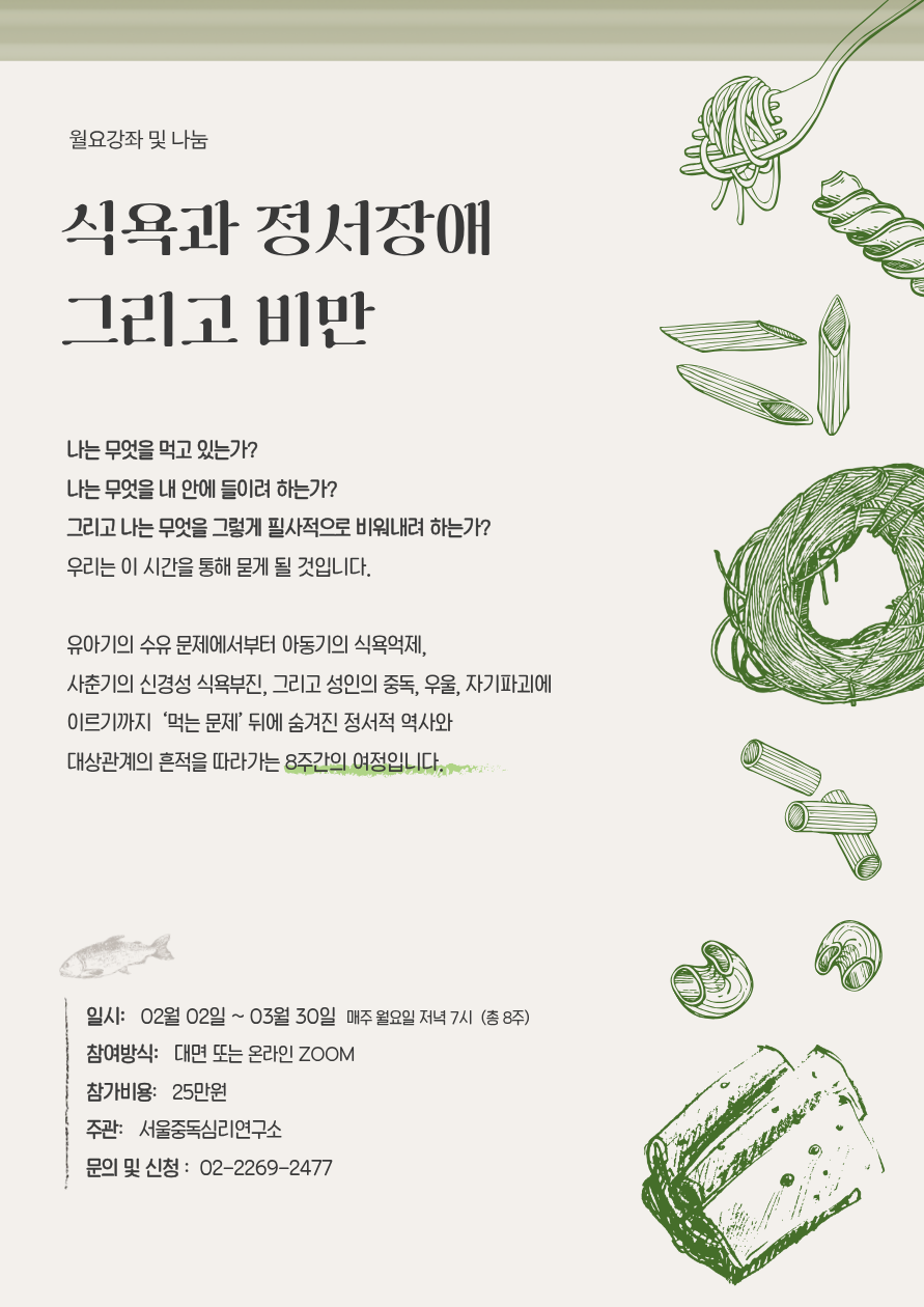 [2월 월요강좌] 식욕과 정서장애, 그리고 비만 (내면탐구에 관심있으시면 추천합니다)